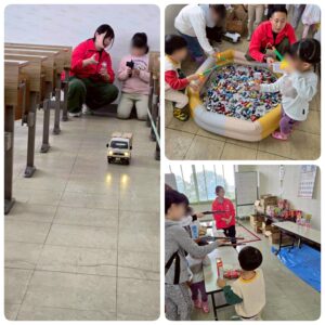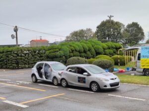 準備を進めていく中で気になるのは当日の天候ですが、天気予報は無情の雨。ですが教習所の協力もあり、屋根のある教習車両置き場や屋内の学科教室をお借りすることができましたので、臨時の打ち合わせ会を開催して雨対策を検討し、予定通りコンテンツを展開することができました。
