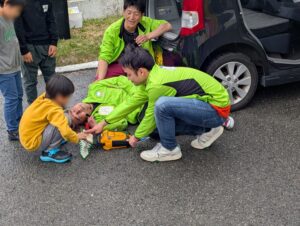 ご来場いただきましたお客様には、「愛車点検教室」のほか、窓割り体験、タイヤ入れ替え体験、発炎筒着火体験など様々なコンテンツを楽しんでいただき、最後はドキドキのカースタントショーです。スタント会社様からは「雨天中止」と言われていましたが、午後には雨も上がり、無事に開催していただけました。