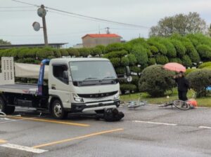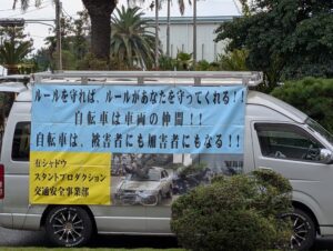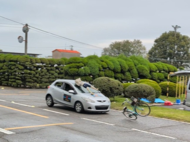 「カースタント」と題していますが、交通安全の啓発のための内容で、歩行車 対自転車、自転車 対 自転車、自転車 対 車、車 対 車…と、様々なシチュエーションで構成されていました。「サイクリストの聖地」と言われているしまなみ海道のお膝下である今治市(今治支部)だからこそ、自転車の交通安全を伝えたかったんです!!